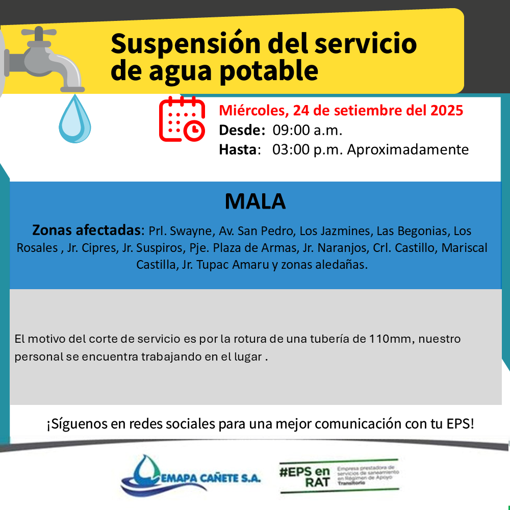 Mantente informado de los acontecimientos que suceden en la EPS EMAPA CAÑETE S.A. y compartelo en las redes sociales.