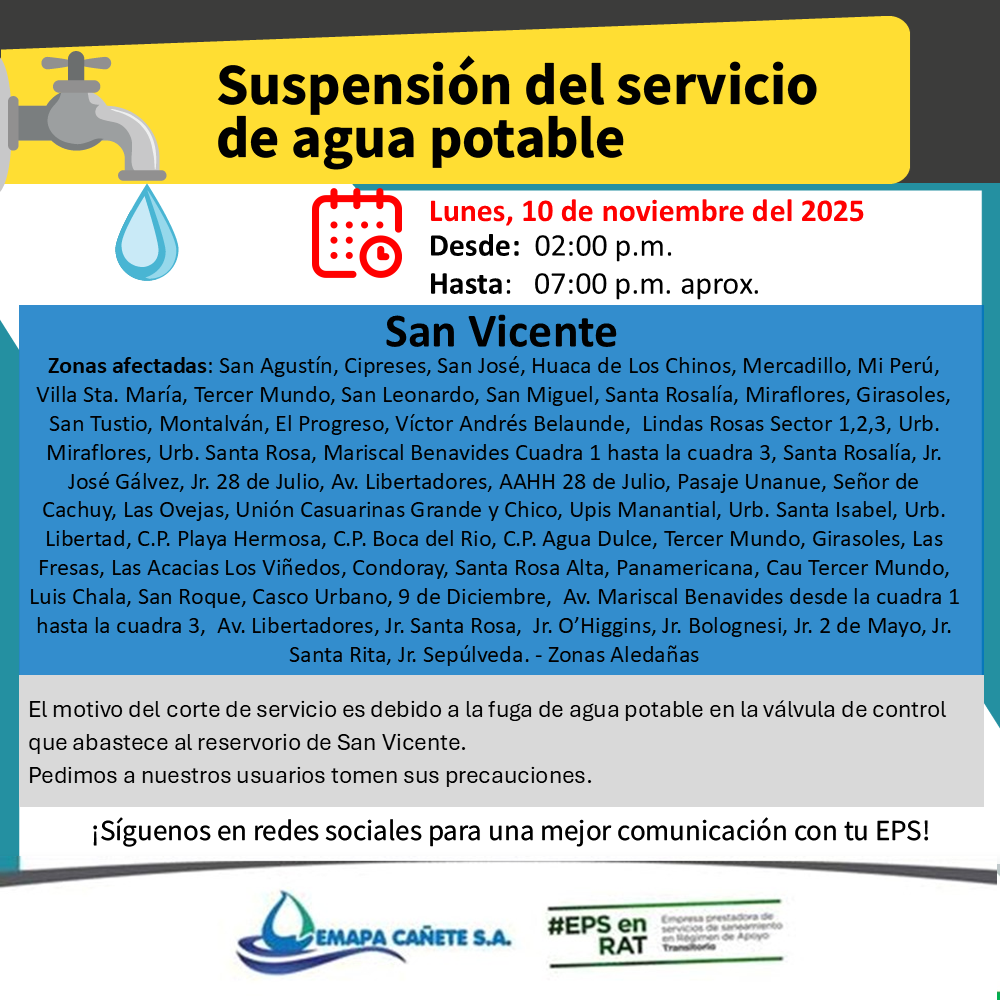 Mantente informado de los acontecimientos que suceden en la EPS EMAPA CAÑETE S.A. y compartelo en las redes sociales.