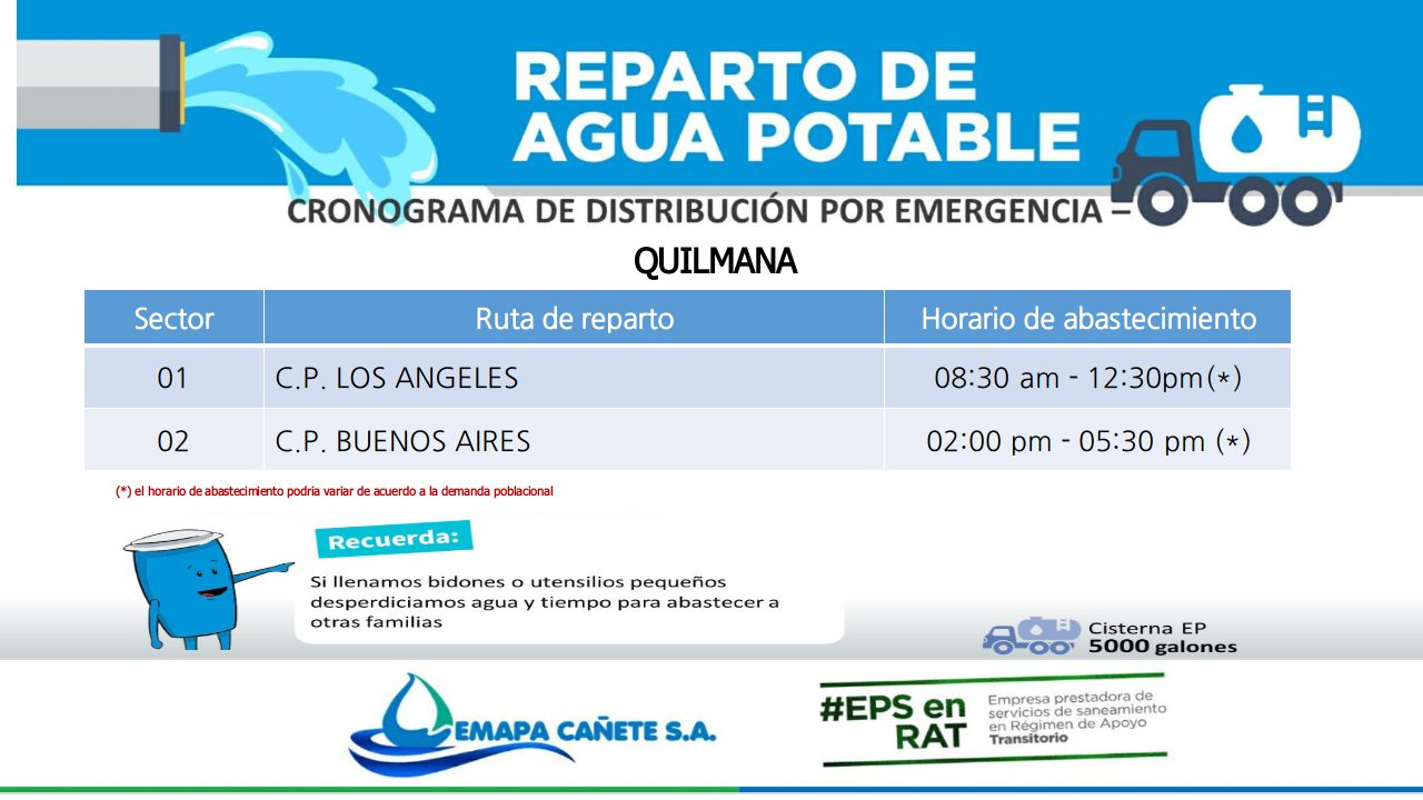 Lamentamos informar a nuestros vecinos del distrito de Quilmana que la restricción del servicio de agua potable se extenderá.