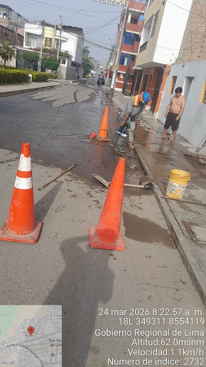 Emapa Cañete S.A. informa a sus usuarios de la localidad de San Vicente que, debido a una rotura imprevista en la red matriz de agua potable, se ha dispuesto la interrupción inmediata del servicio para realizar labores de reparación urgente.