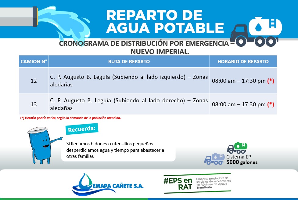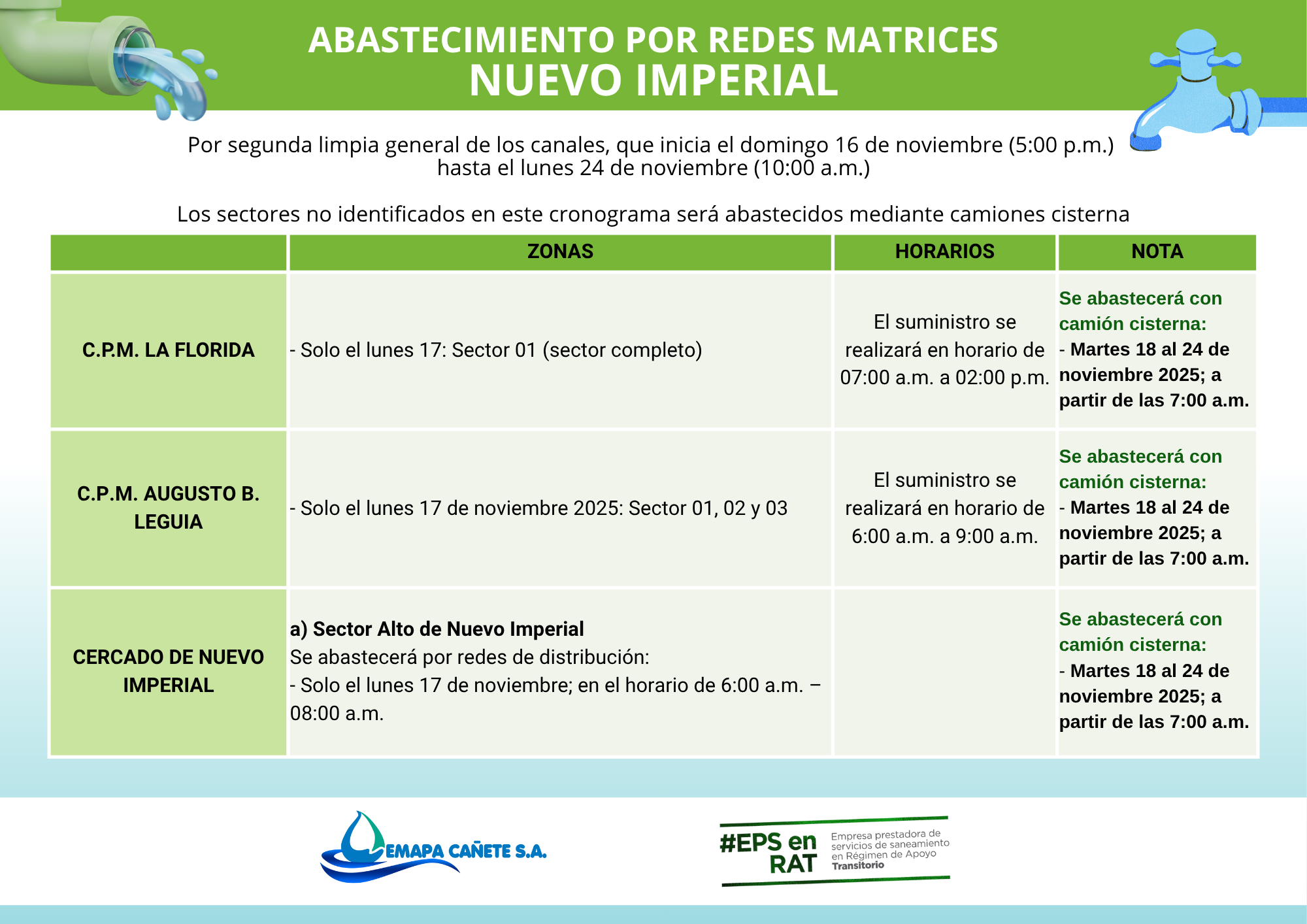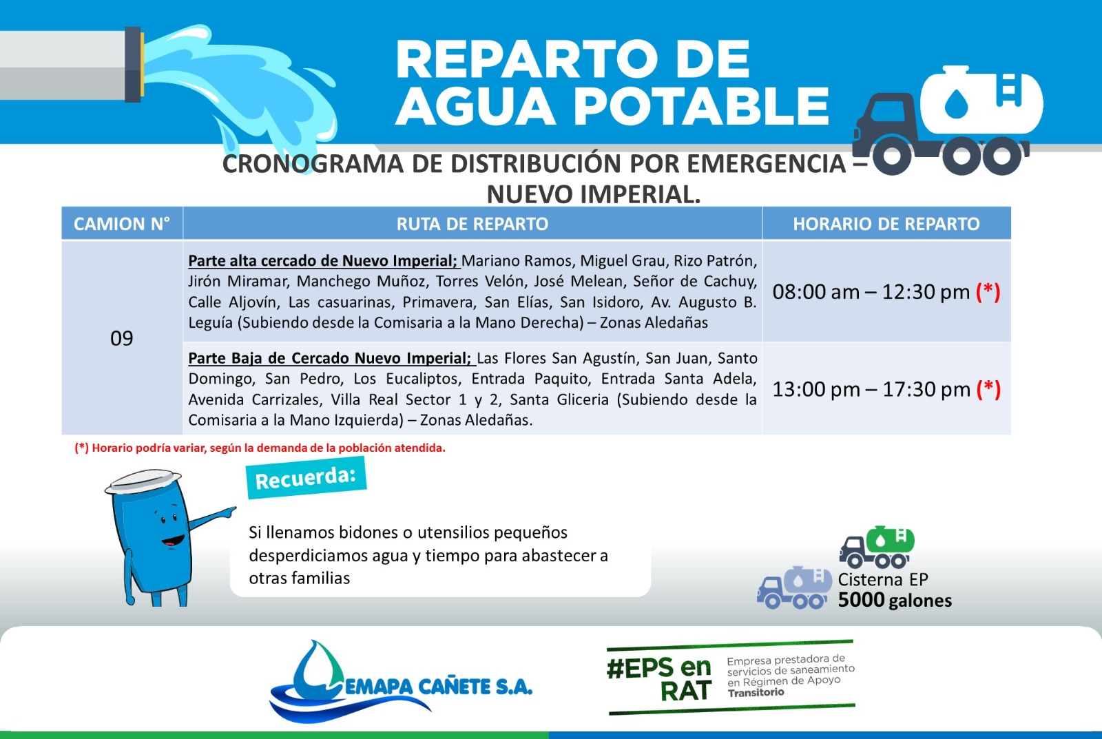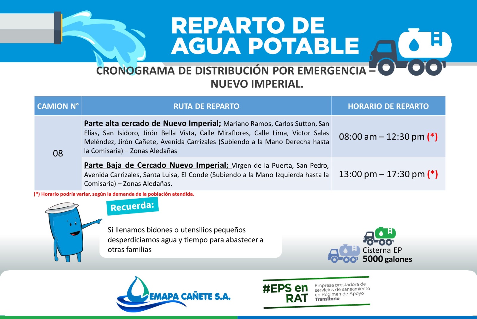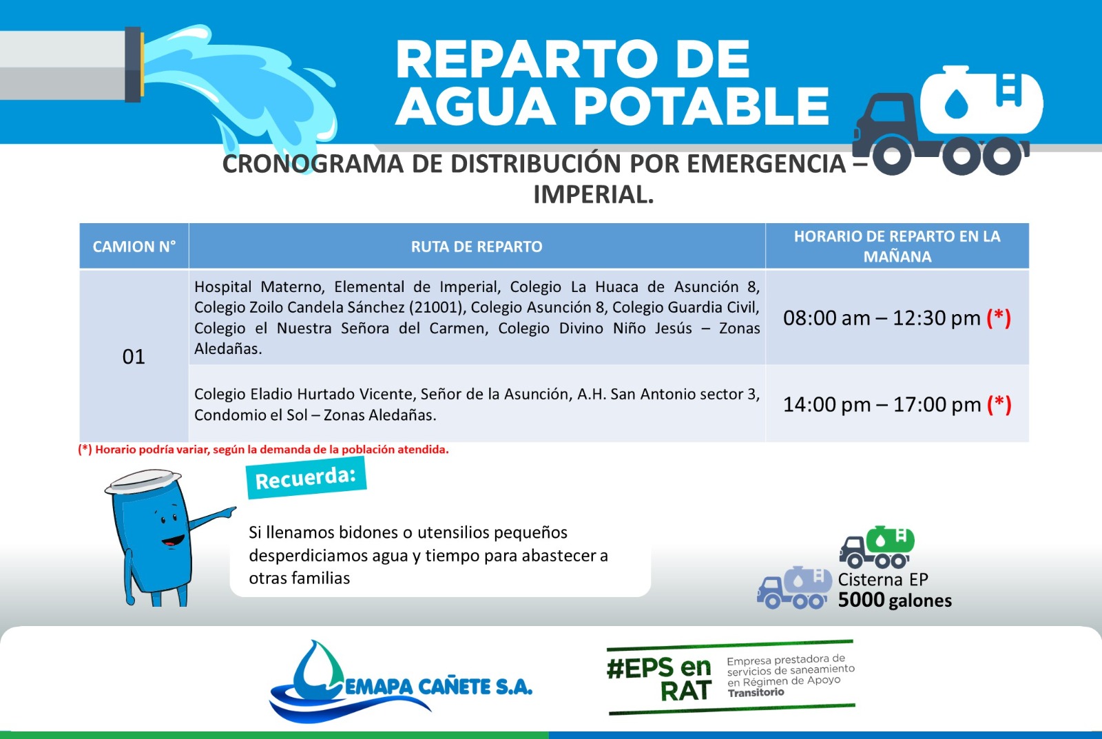 Estimados vecinos de Imperial, San Vicente y Nuevo Imperial, Emapa Cañete S.A. informa: