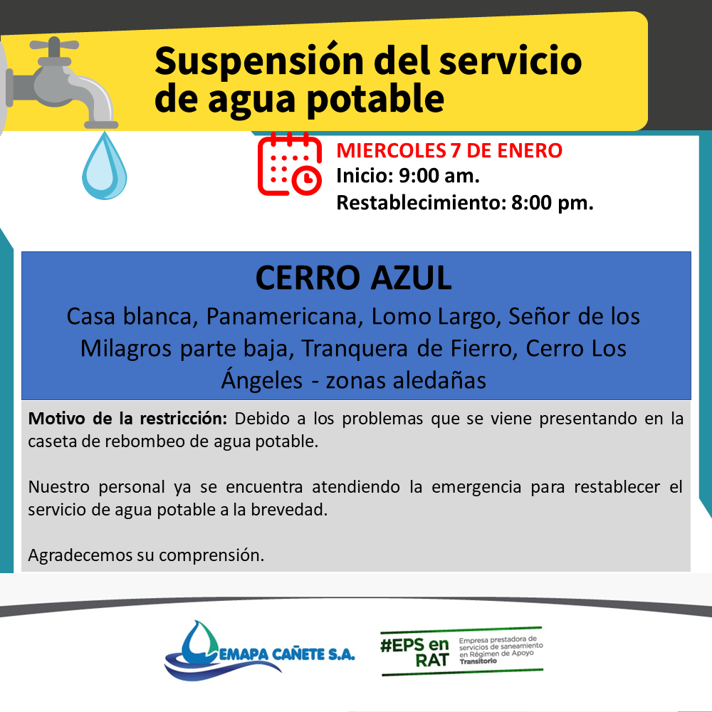 #EmapaCañete #CerroAzul #Comunicado #ServicioDeAgua