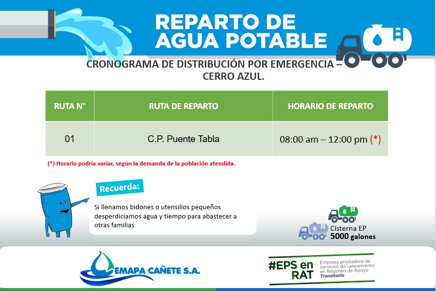 Informamos a nuestros usuarios de Puente Tabla en Cerro Azul sobre las acciones realizadas hoy, 9 de enero, para optimizar el servicio de agua potable: