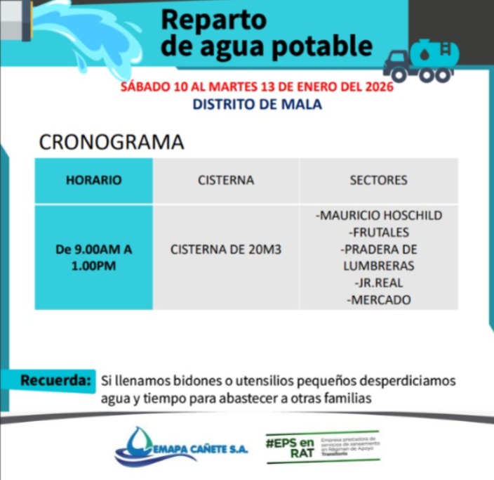 📢 COMUNICADO: ATENCIÓN SOBRE EL SERVICIO DE AGUA EN MALA