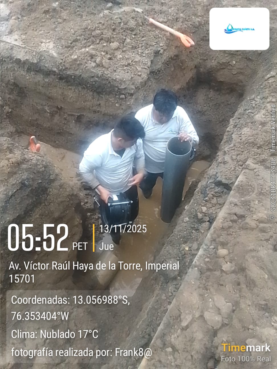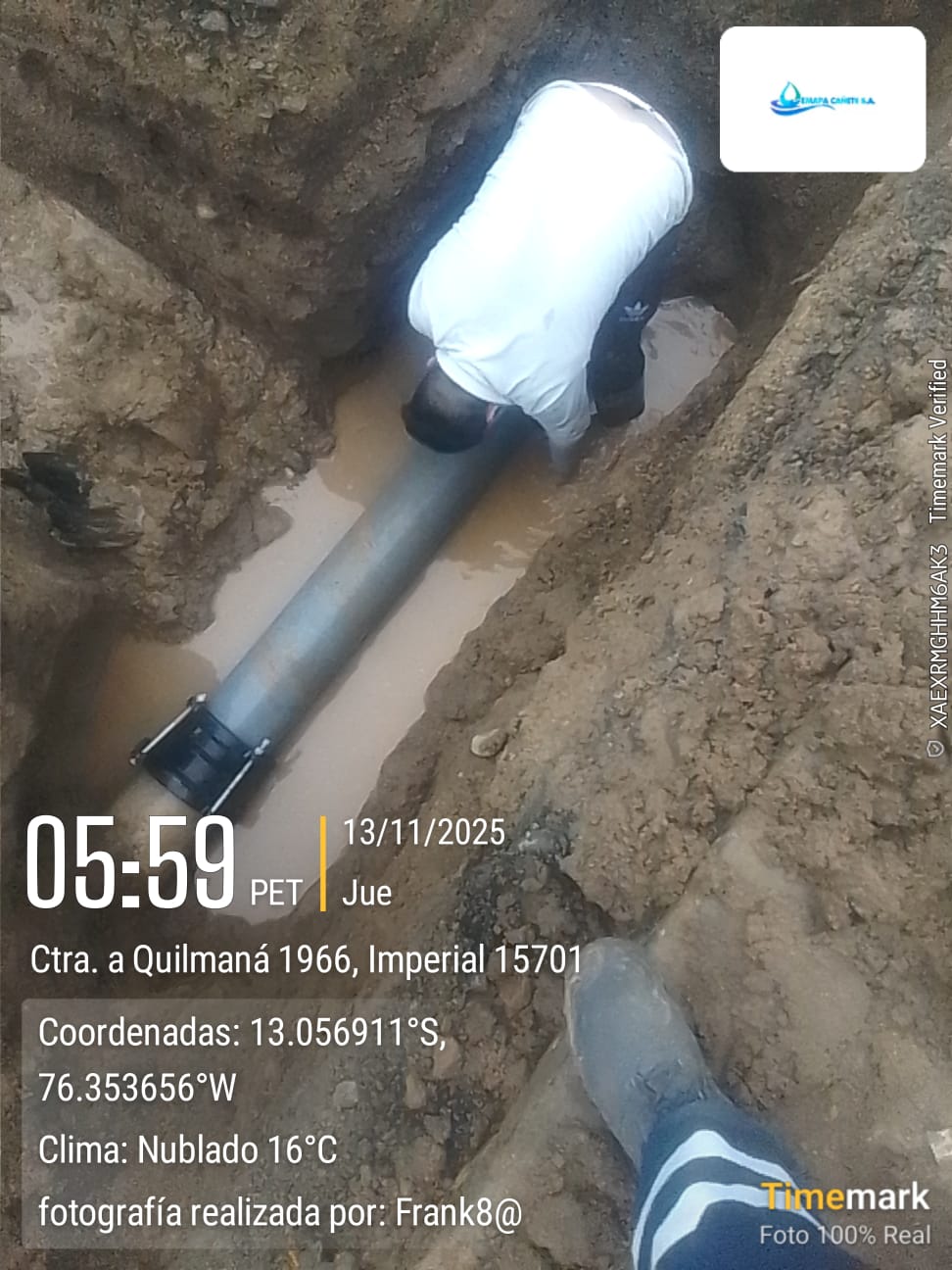 Emapa Cañete S.A. informa a la población de Imperial sobre la interrupción total del servicio de agua potable, que se ha efectuado desde la 1:30 a.m. de hoy, Jueves 13 de Noviembre.
