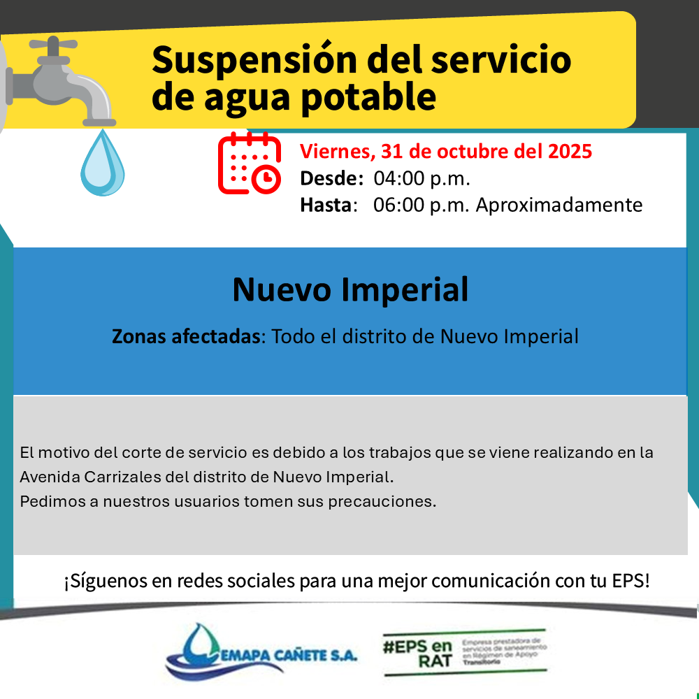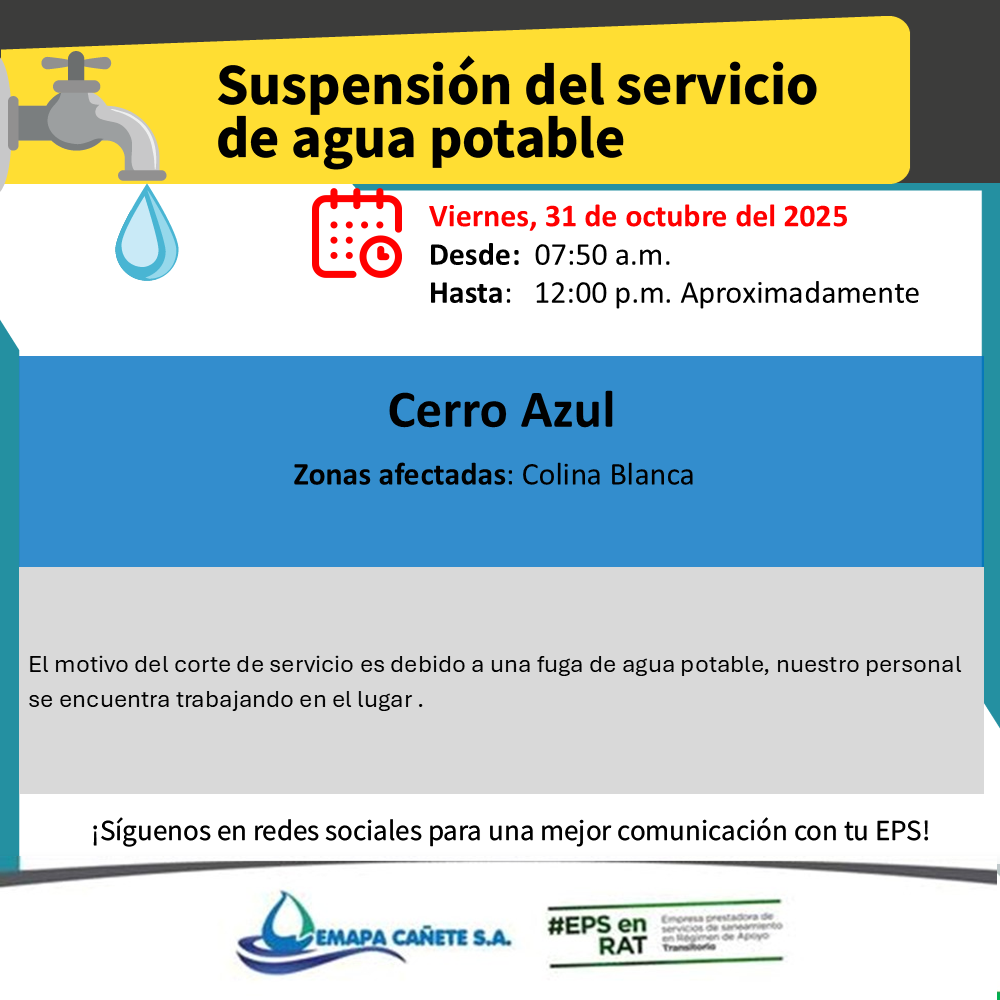 Mantente informado de los acontecimientos que suceden en la EPS EMAPA CAÑETE S.A. y compartelo en las redes sociales.
