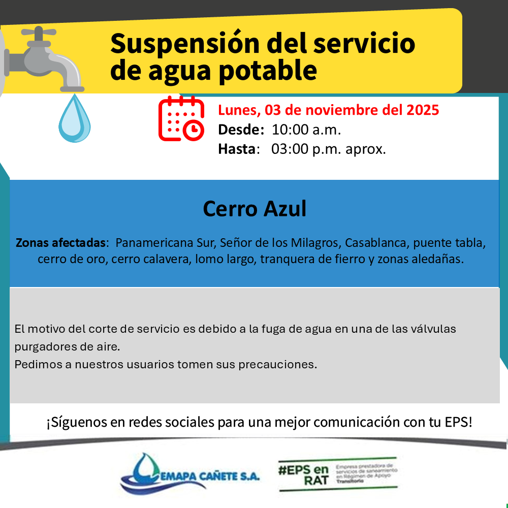SUSPENSIÓN DEL SERVICIO DE AGUA EN CERRO AZUL