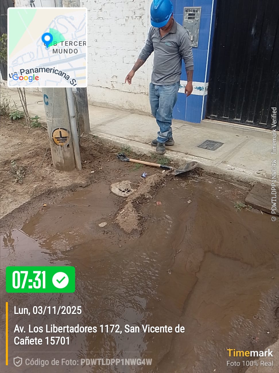 Suspensión del servicio de agua potable en el sector de Tercer Mundo en el distrito de San Vicente