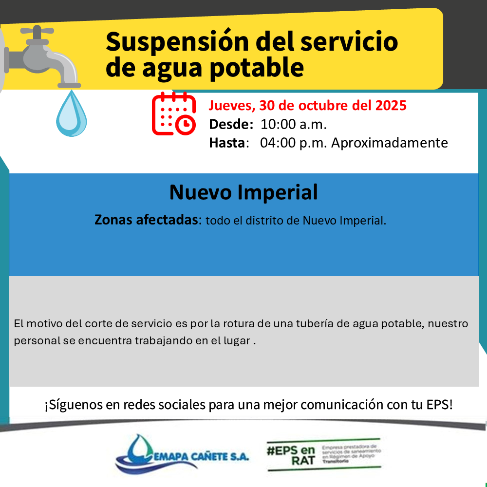 ¡Atención, vecinos del distrito de Nuevo Imperial!