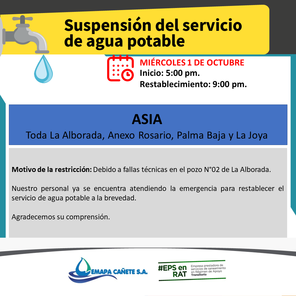 SUSPENSIÓN DEL SERVICIO DE AGUA POTABLE EN EL DISTRITO DE ASIA