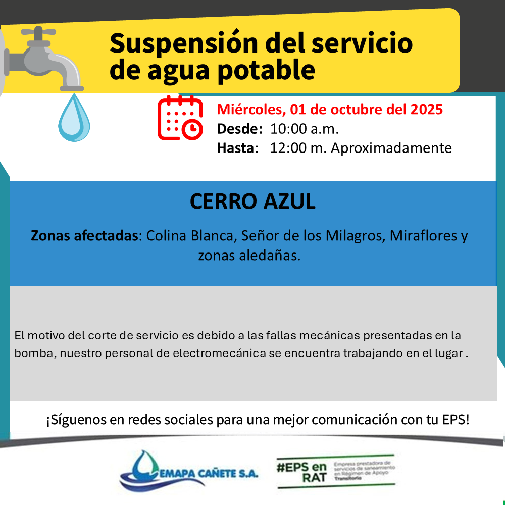 SUSPENSIÓN DE AGUA POTABLE EN CERRO AZUL