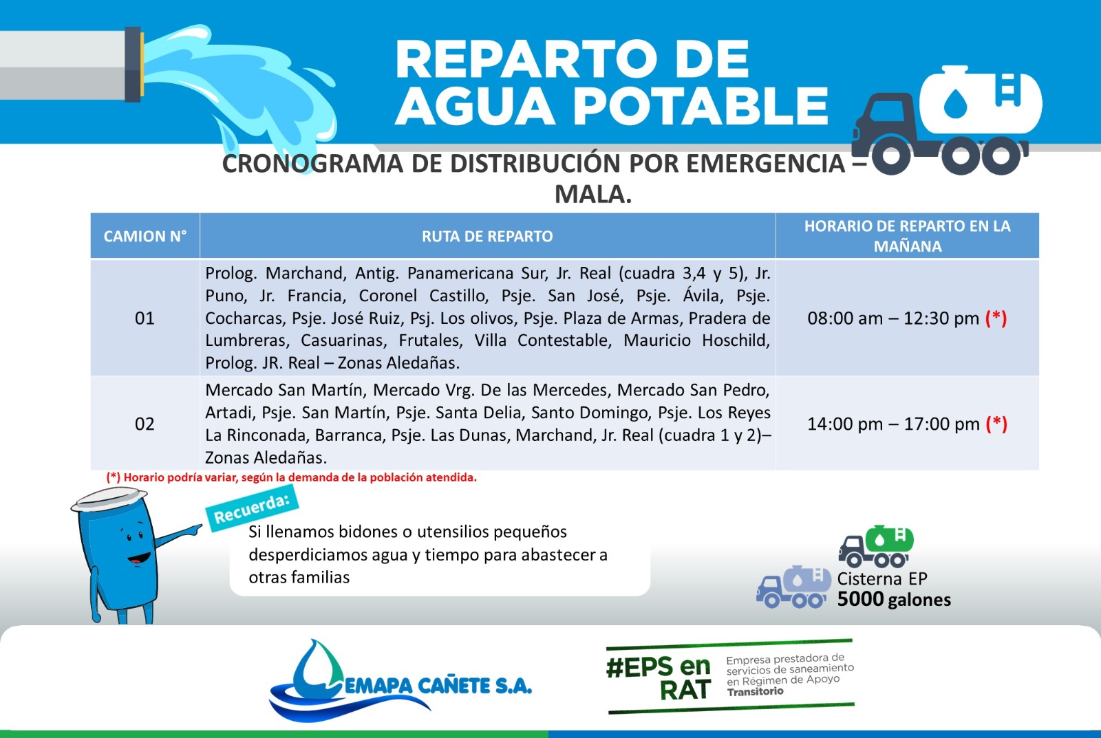 Cronograma de distribución de los camiones cisternas para el distrito de Mala